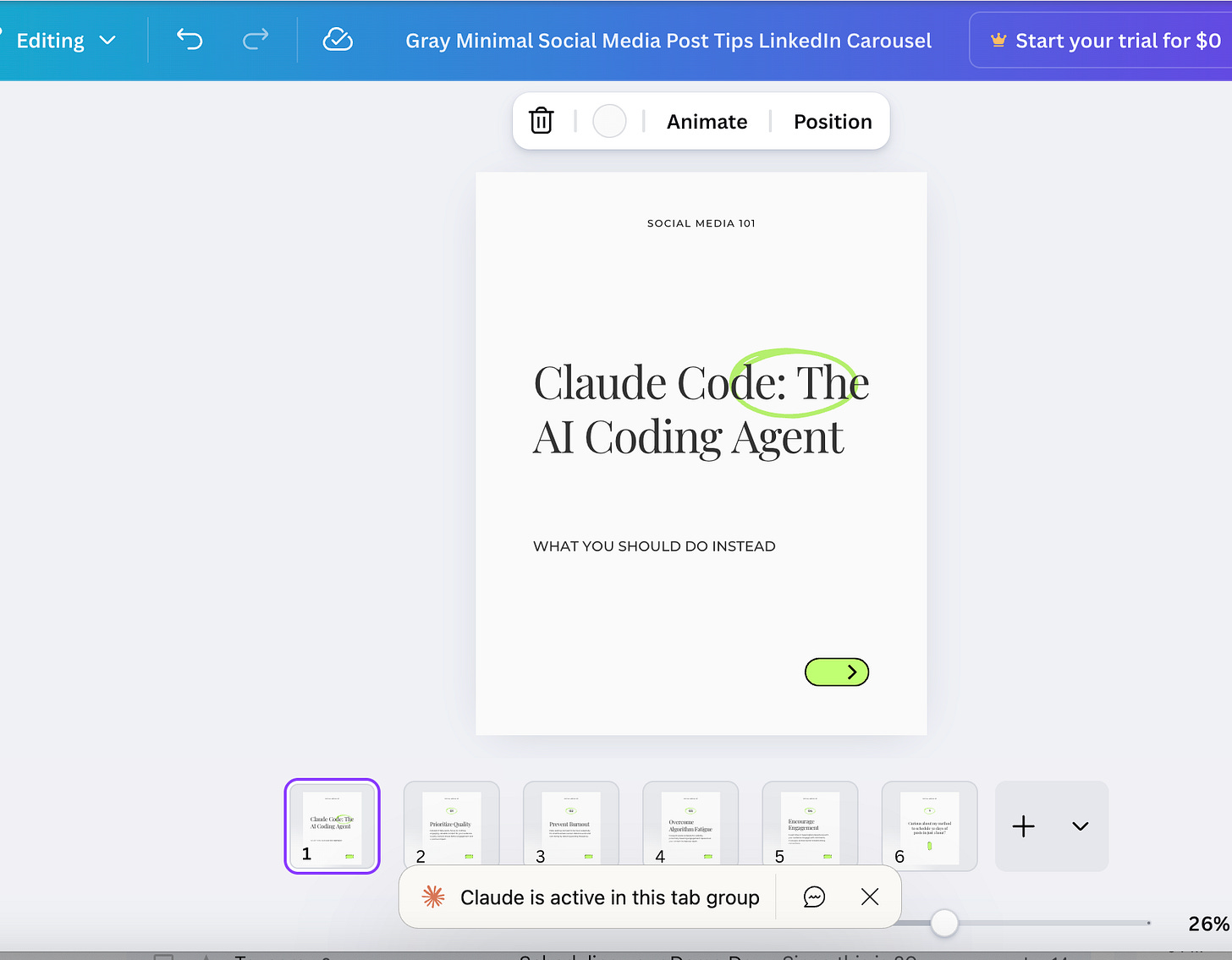 Disclosure: This article was written by me, a human, after I spent about way too much looking for ways to avoid manually pasting text into Canva templates, which I find really annoying. Claude lightly edited this article and also wrote a bunch of demo carousels.